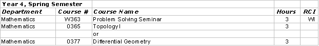 The interdisciplinary program is jointly administered by the departments of Mathematics and Physics. For further discussion of the Interdisciplinary major, see http://www.temple.edu/physics/undergradprog.html under "dual program in physics and mathematics." Five-year Master's ProgramsThe Combined B. A. or B.S./M.A. ProgramTo participate in this five-year program, a mathematics major should be enrolled in either the B.A. or the B.S. program. Application to continue in the M.A. program must be made to the Graduate Chair of the department no later than the first semester of the senior year. To be accepted by the M.A. program, a student must have a GPA of at least 3.25 in Mathematics courses when the application is made. In addition to completing the B.A. or B.S. requirements, the student must complete four additional graduate-level mathematics courses (numbered 0400 and above) by the end of her/his senior year. If the Core and College requirements have also been met, the student will be awarded the B.A. or B.S. degree at the conclusion of this portion of the program. All courses must be passed with a grade of C- or better, and no more than two graduate courses can carry a grade less than B- for the student to continue with the M.A. portion of the program. Fifth-Year Course RequirementsThe student will take a total of six graduate level courses, selected to conform to the M.A. requirements. At the end of the fifth year, the student must either write a master's thesis or pass one of the following examinations: Five-Year Master’s/Secondary Education Certification ProgramThis is a combined program between the College of Science and Technology and the College of Education. For more information, see the following website. Minor Requirements●Three semesters of calculus (Mathematics C085, 0086, and 0127). Distinction in MathematicsA student who wishes to graduate with Distinction in Mathematics should apply to the Director of Undergraduate Studies no later than the second semester of the junior year. The following requirements must be met: 1. All requirements for the B.A. or B.S. degree in Mathematics must be met with a GPA of at least 3.50 in the Mathematics courses. (Note: The University is reviewing all school and college, major, and GPA requirements above 2.0. Please refer to the electronic Bulletin for up-to-date information at www.temple.edu/bulletin/academic_programs.) |