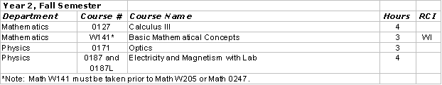 Mathematics and Physics, B.S. Degree.Calculus I, II, III; calculus-based physics I, II; Math 0147 or 0148, W205, 0233, 0247, 0248, 0251, 0253, 0347; Physics 0161, 0171, 0187 w/lab, 0188 w/lab, 0201, 0202, 0211, W215, 0231, 0306; Math 0351 or Physics 0184.